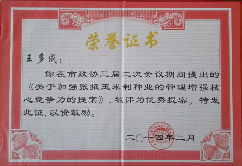 張掖市多成農業(yè)有限公司是一家以玉米雜交種生產經營為主的農業(yè)科技型民營企業(yè)。公司由兩個種子加工廠和1個良種繁育基地及1個優(yōu)質梨示范基地組成。加工廠占地15.8萬平方米,擁有種子加工線3條,檢驗室2個,年生產、加工能力2000萬公斤。有良種示范基地2000畝,優(yōu)質梨示范基地500畝。固定資產總值超億元。 公司自成立以來,選育、示范推廣“正德”系列玉米新品種3個,年銷量1000多噸。先后與東北、華北、黃淮等地的多家大型種子企業(yè)建立了穩(wěn)定的……[查看全文] |